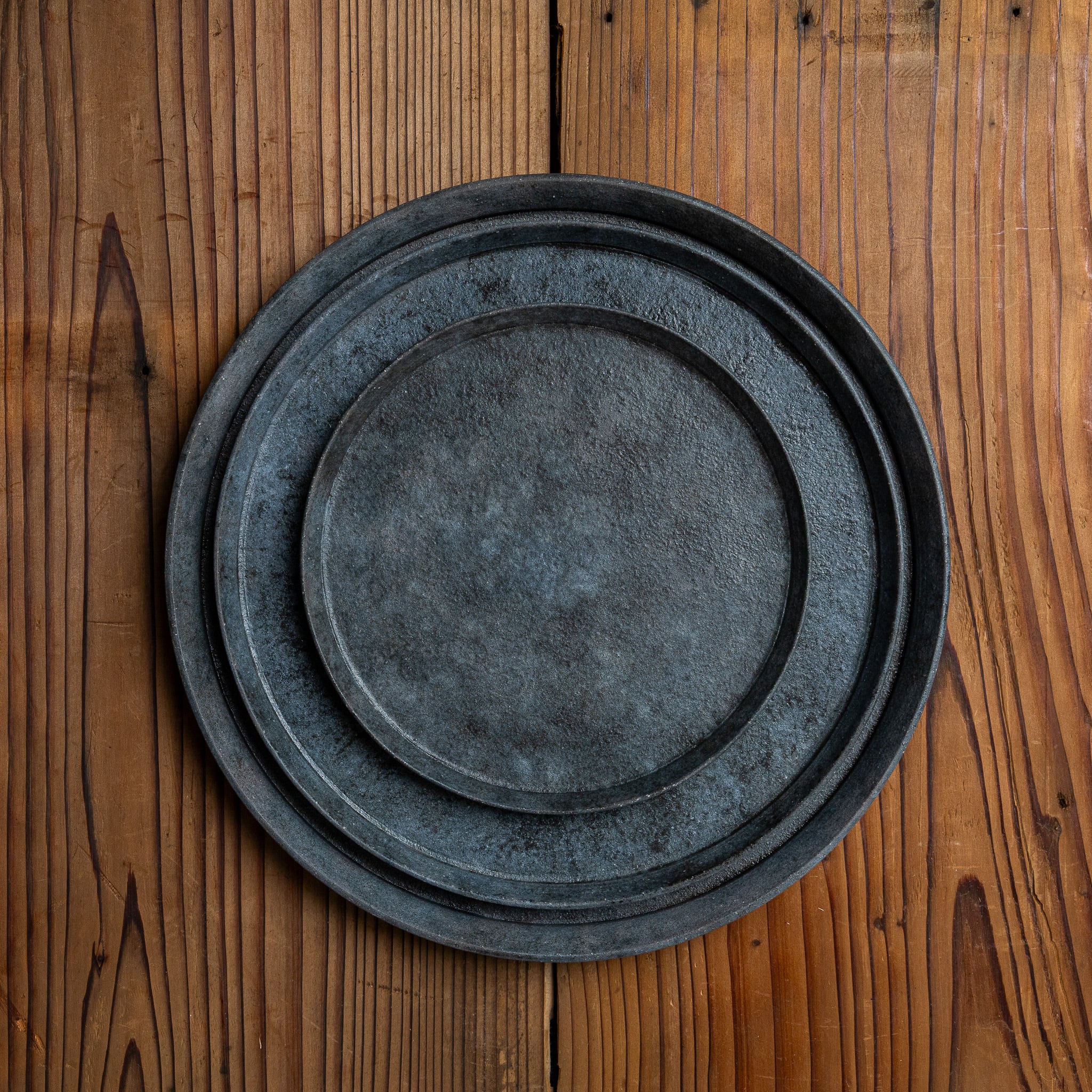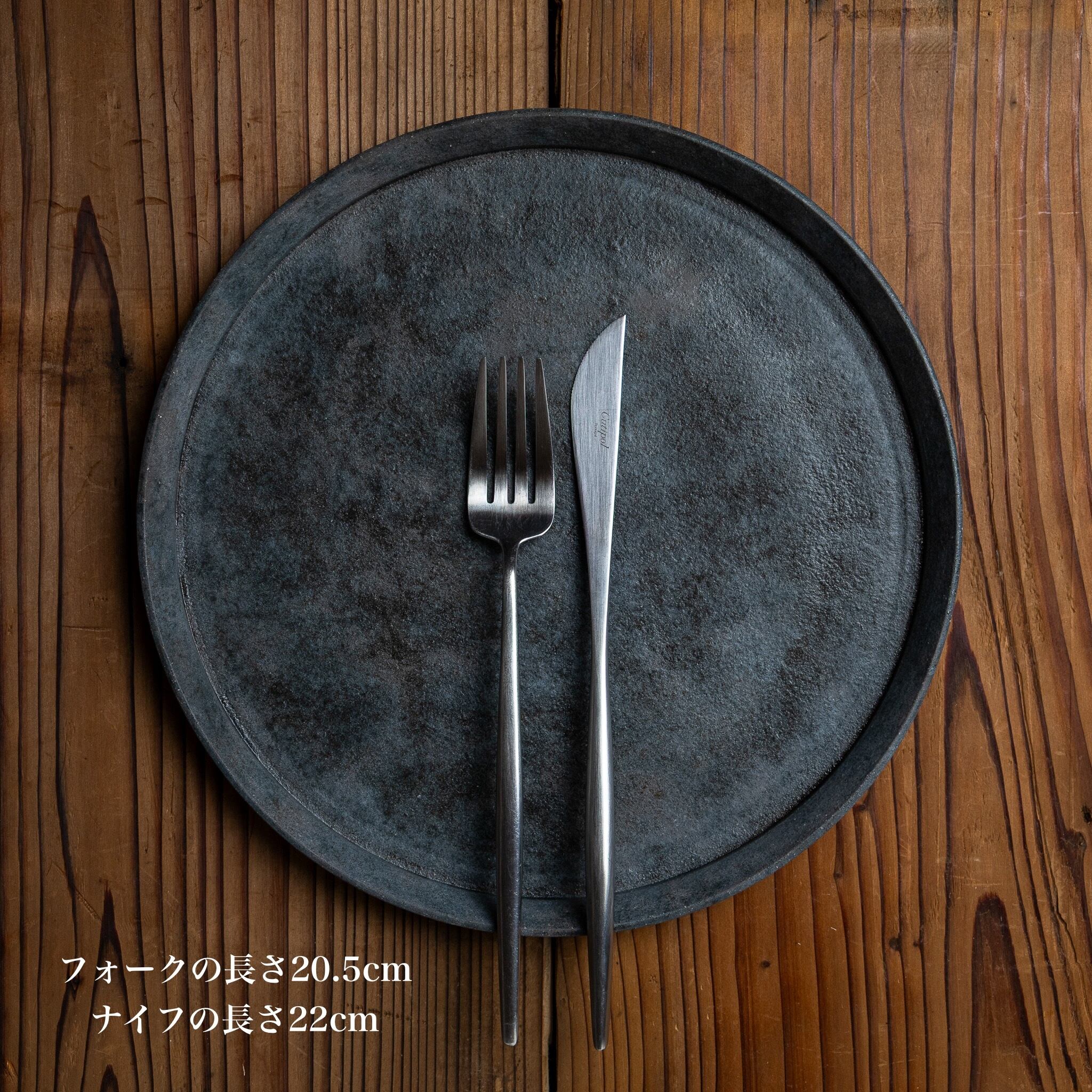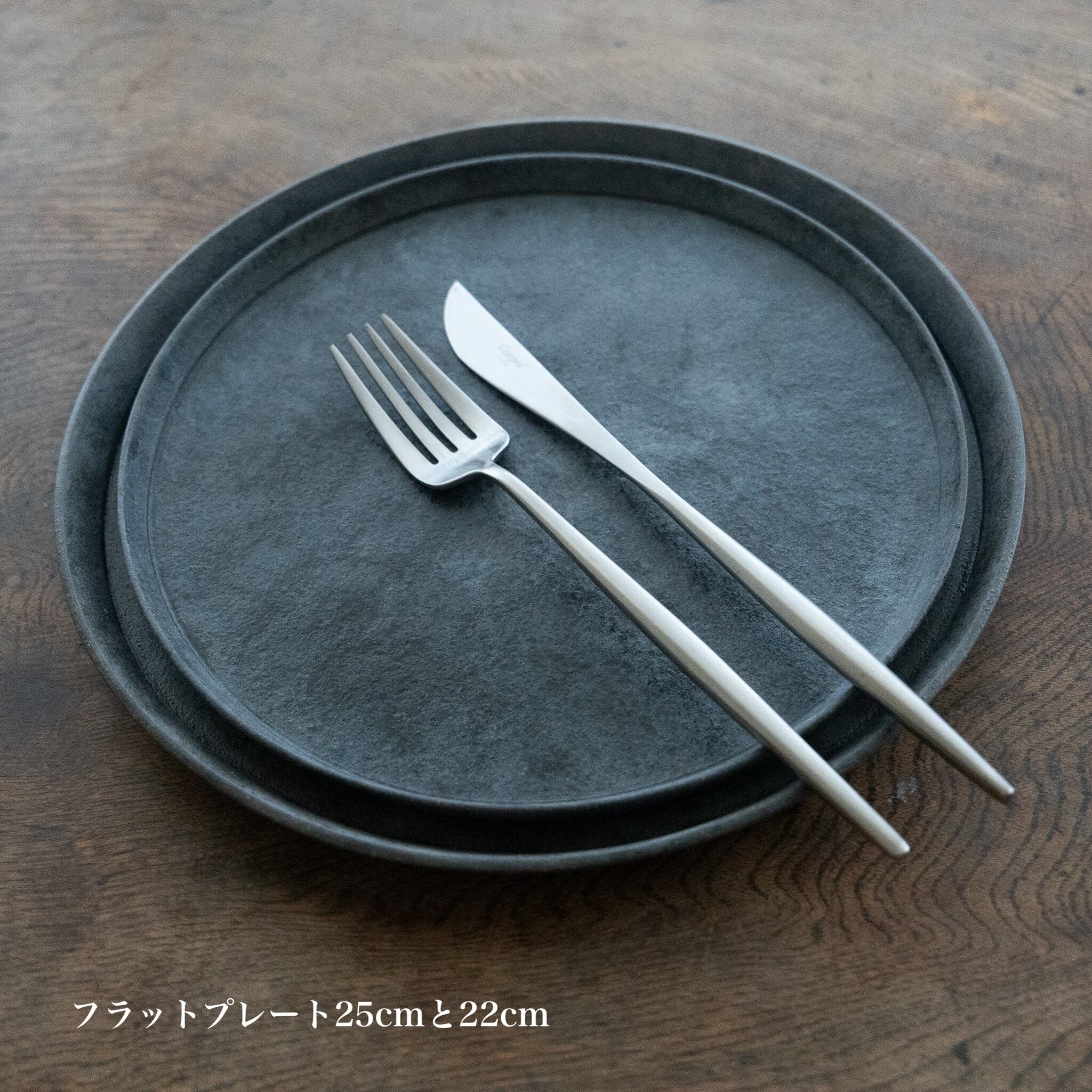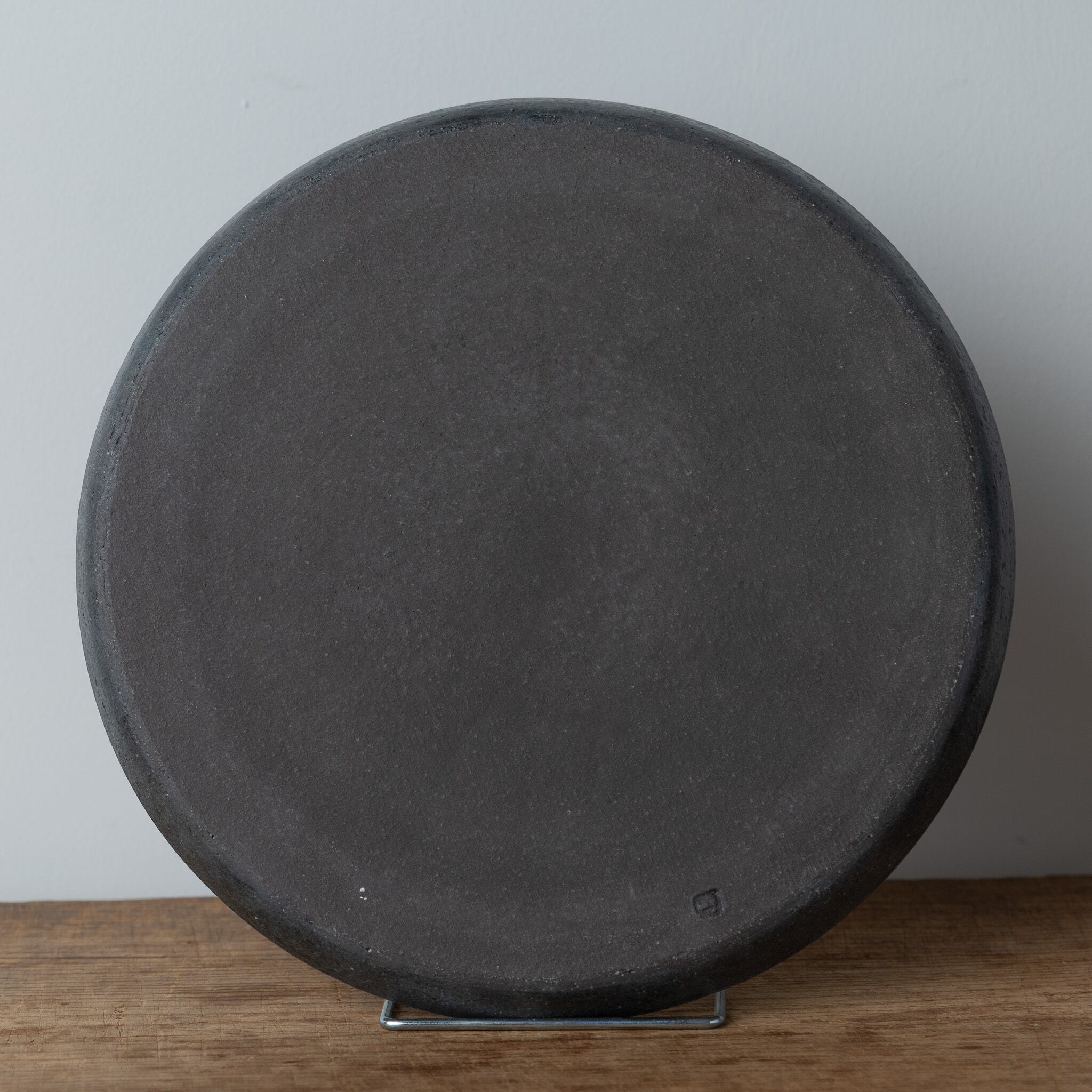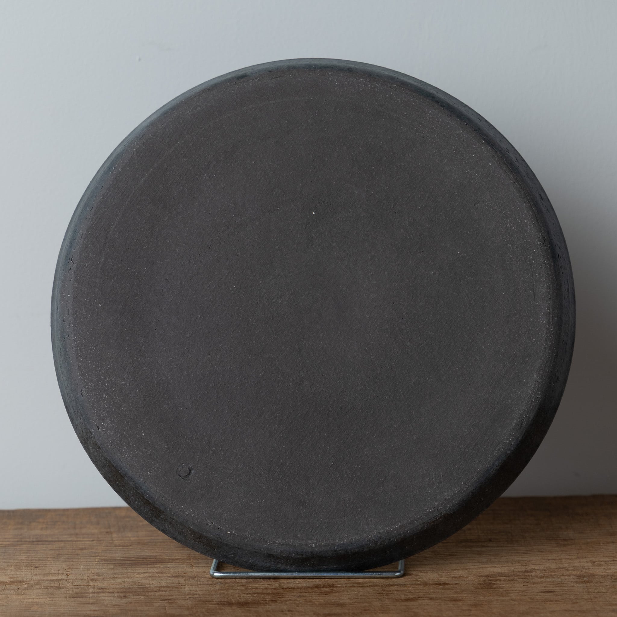 黒土に薄く灰釉をかけ、その上から黒と白の2種類の釉薬を手でテクスチャーをつけながら塗り、グレーから黒い色のうつわを作りました。